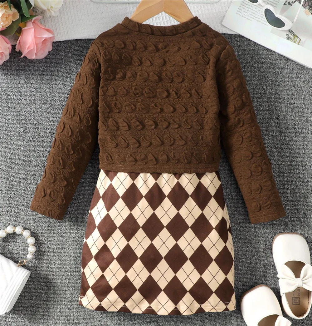 Girls’ 2-Piece Brown Top & Lattice Dress Set