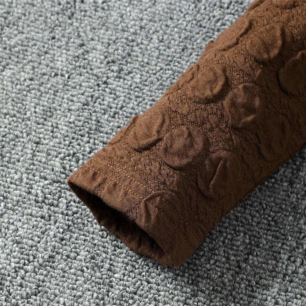 Girls’ 2-Piece Brown Top & Lattice Dress Set