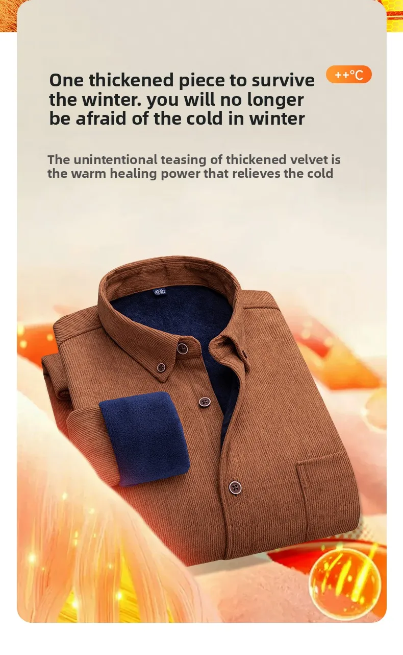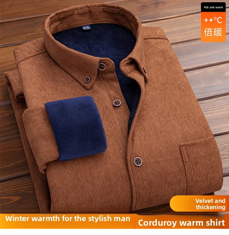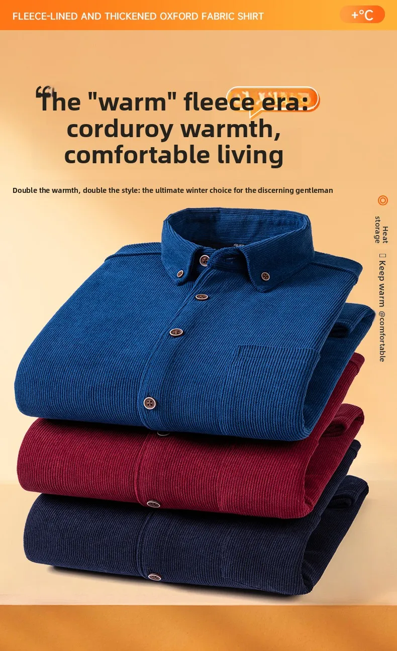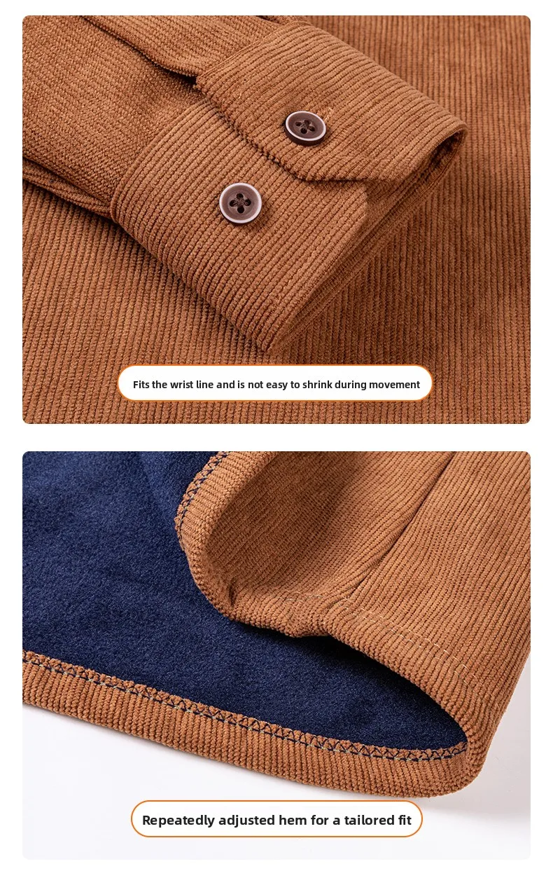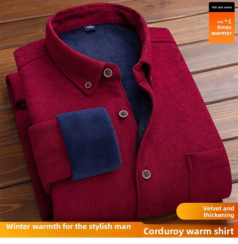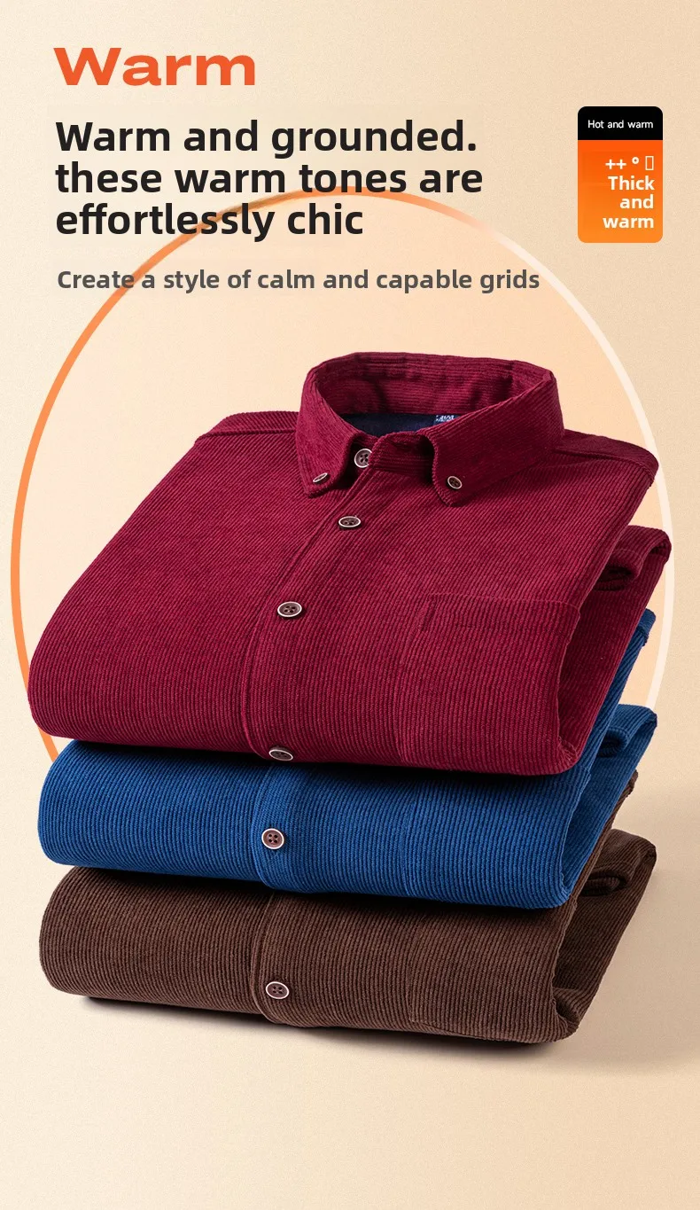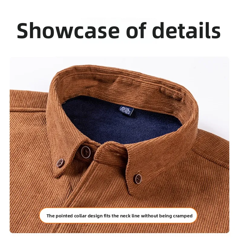 Men’s Large Size Corduroy Fleece Warm Plaid Classic Style