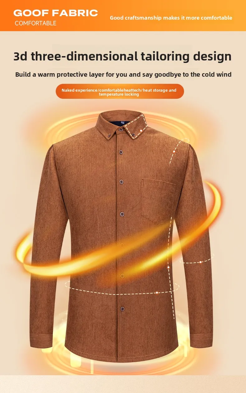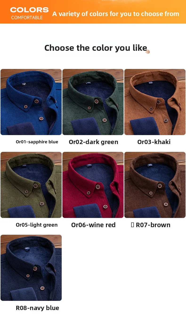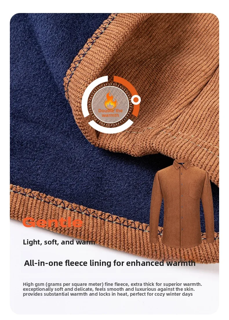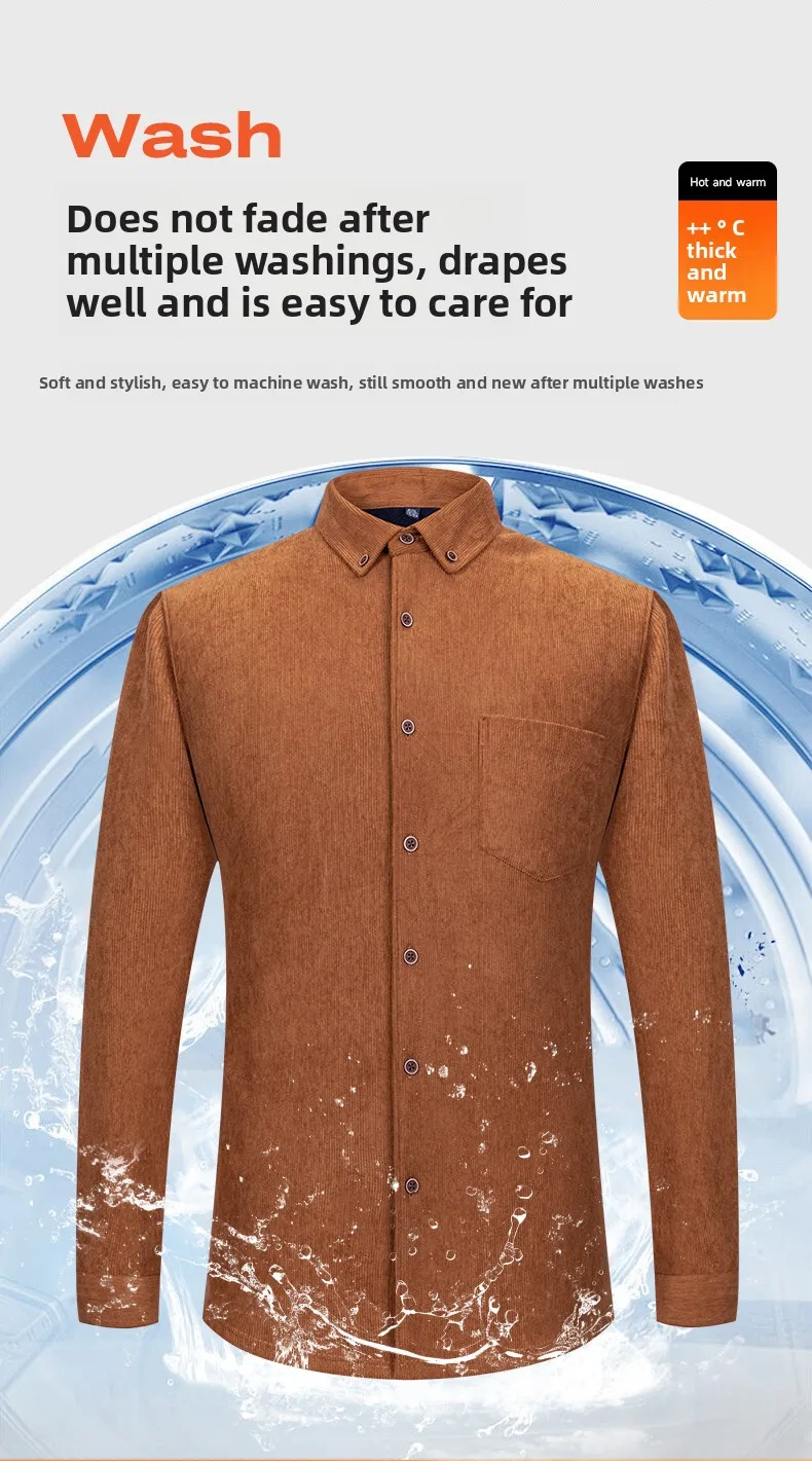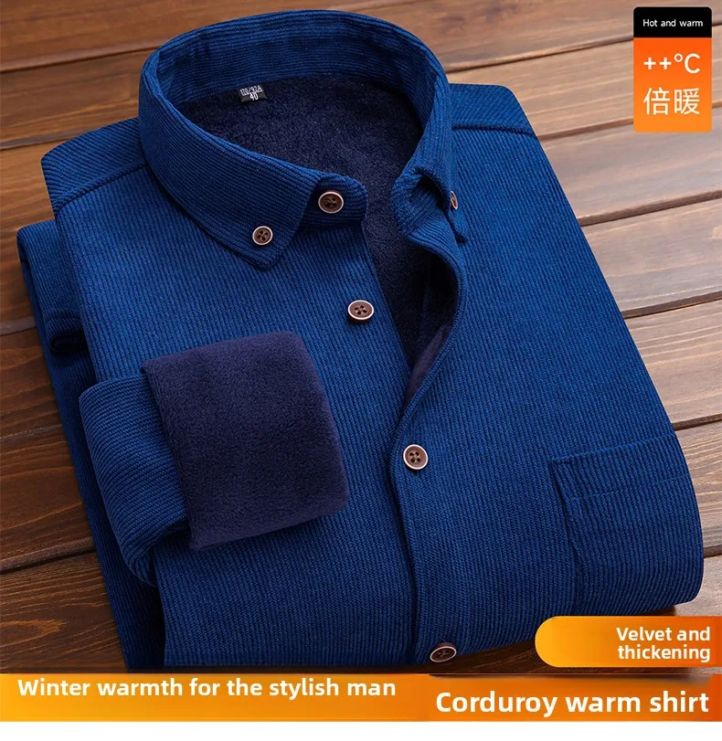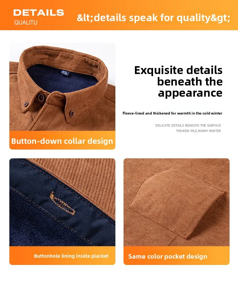 Men’s Large Size Corduroy Fleece Warm Plaid Classic Style