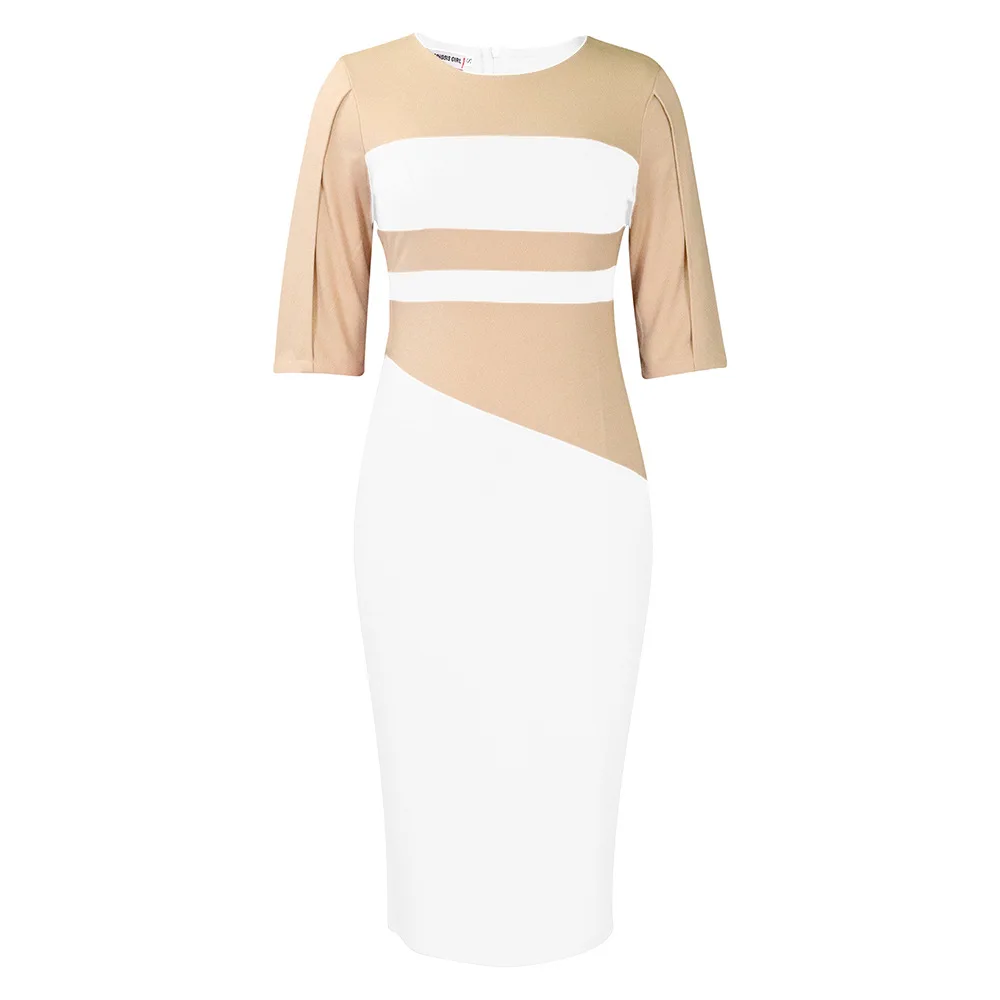 2024 New Europe Africa Women Dresses Half Sleeve O-neck Lady Office Elegant Fashion Patchwork Pencil Midi Long Dress