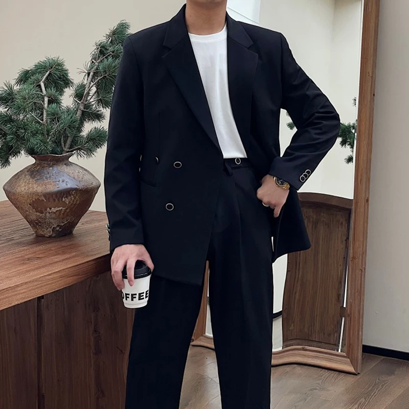 2024 Retro Simple Man Suit Micro Loose Wedding Suits for Men Office Formal Suits Set