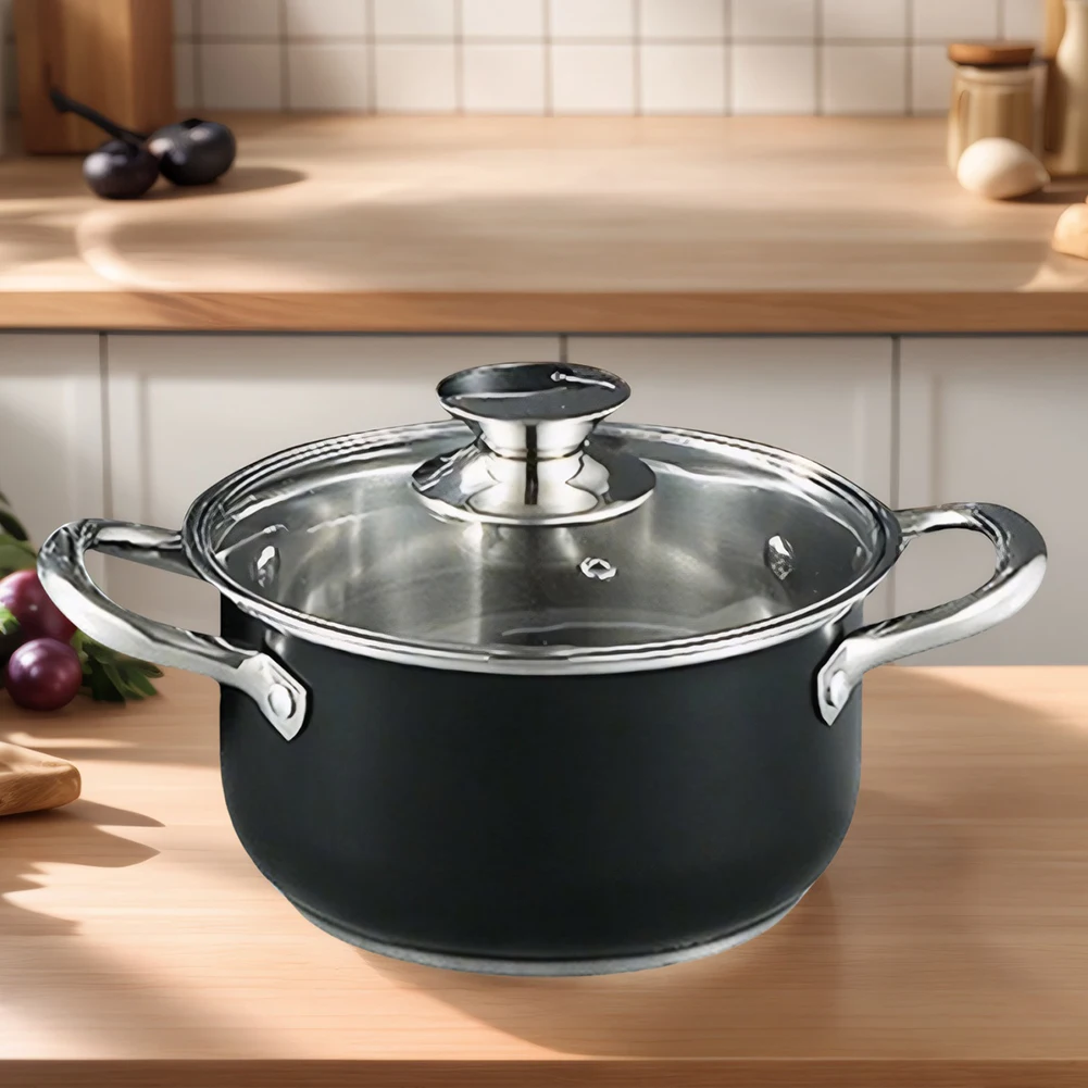 Features: 1.Modern Necessity: Upgrade your kitchen with our 8-piece household pot set, for creating delicious daily meals. The stainless steel cookware set and ergonomic handles fit any kitchen decor, providing professional cooking results for all dishes, big or small. 2.Durability at Its Best: Our cookware features a tri-ply premium stainless steel base and thickened aluminum core, ensuring even heating and long-lasting performance. This universal cooking pot combination is non-toxic, won’t discolor, and won’t react with food, ensuring safe, flavorful meals while saving time and energy. 3.Flavor Locked In: The soup pot set includes pro-grade tempered glass lids with steam vents to effectively lock in heat, moisture, and nutrients. Smooth tapered edges prevent drips and spills while pouring. Double-riveted comfortable handles ensure strength and lasting heat retention, making stove operation convenient. 4.Easy Maintenance: The stockpot cookware suit is dishwasher-safe and can be cleaned with scouring pads or steel wool without scratching, thanks to its scratch-resistant design. It won’t wear out or degrade when using metal utensils. 5.Versatile and Reliable: This cookware set’s stainless steel construction ensures consistent performance on various stovetops and is adaptable to different cooking needs. Enjoy excellent heat distribution, eliminating hot spots and ensuring perfectly cooked dishes every time.
