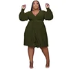 Autumn Plus Size Women Clothes Long Puff Sleeve V Neck Solid Color Casual Dresses Loose Knitted Plus Size Women Dresses