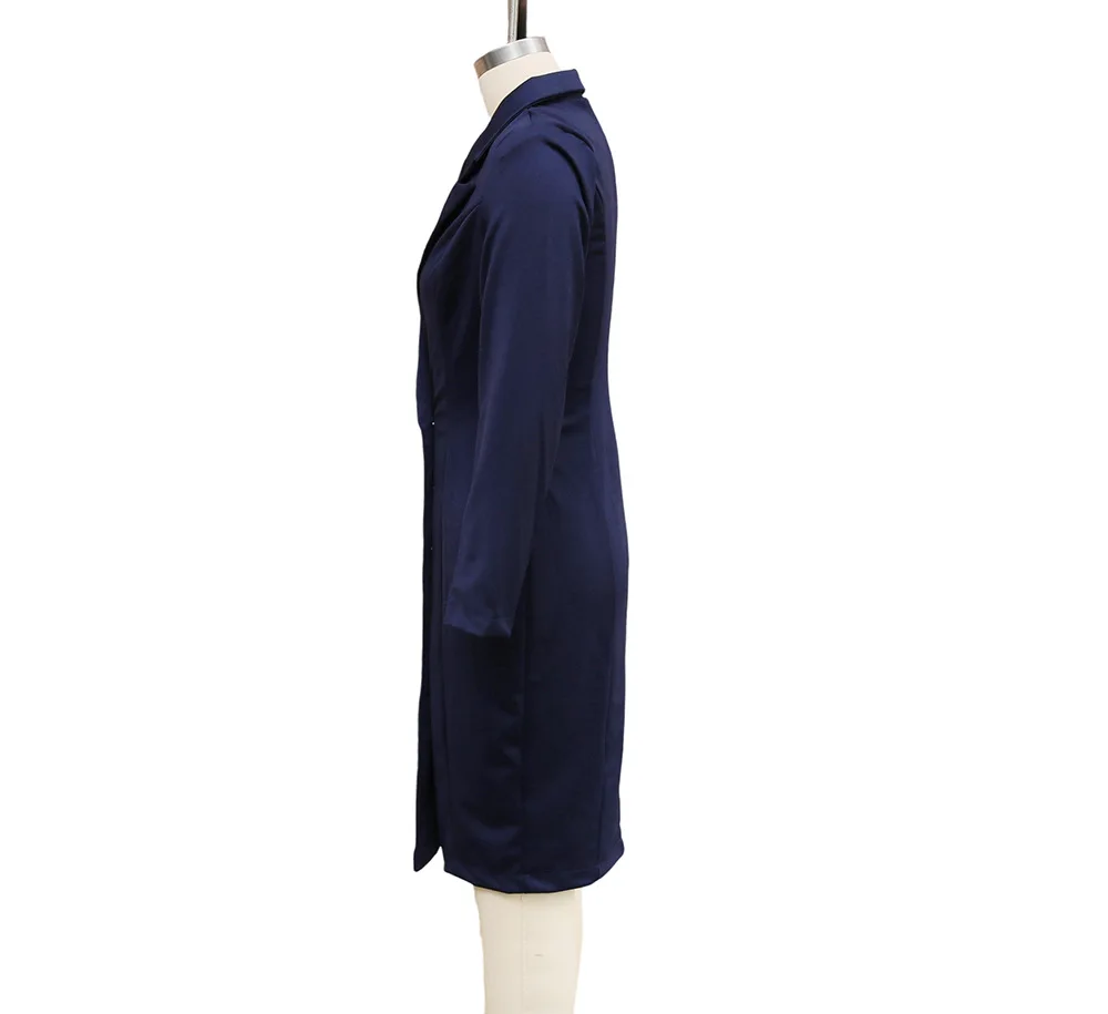 The double-button closure adds a classic touch to this professional yet stylish dress.