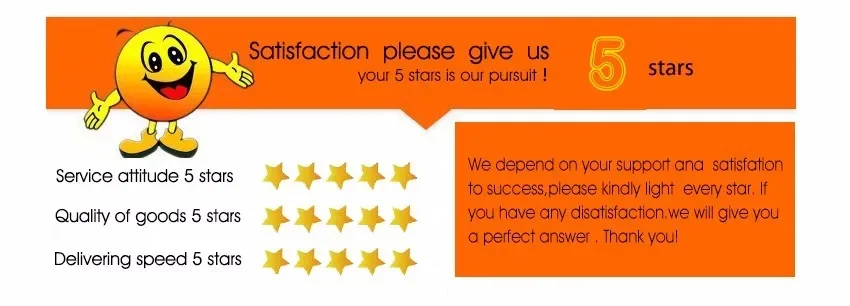 We will try our best to supply you good quality items and good service . Your satisfaction is our pursuit .Pls contact us when you have any problem . We will solve the problem for you asap .