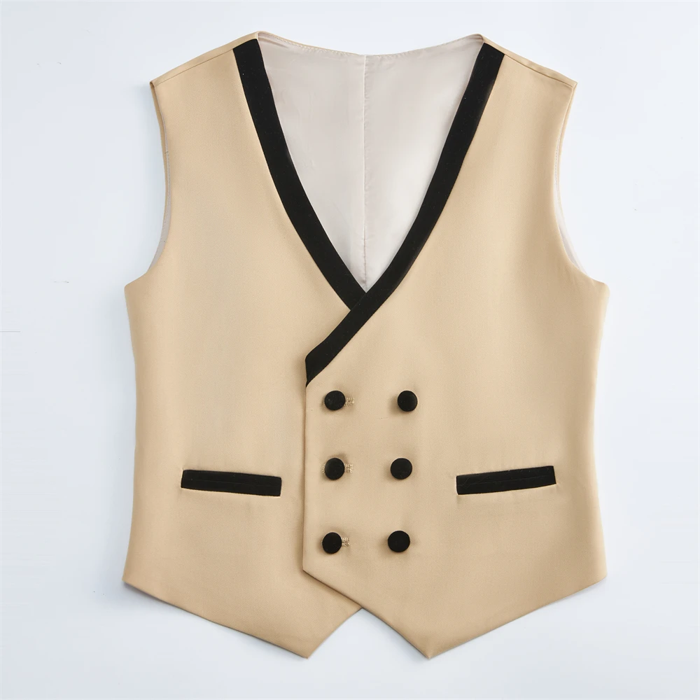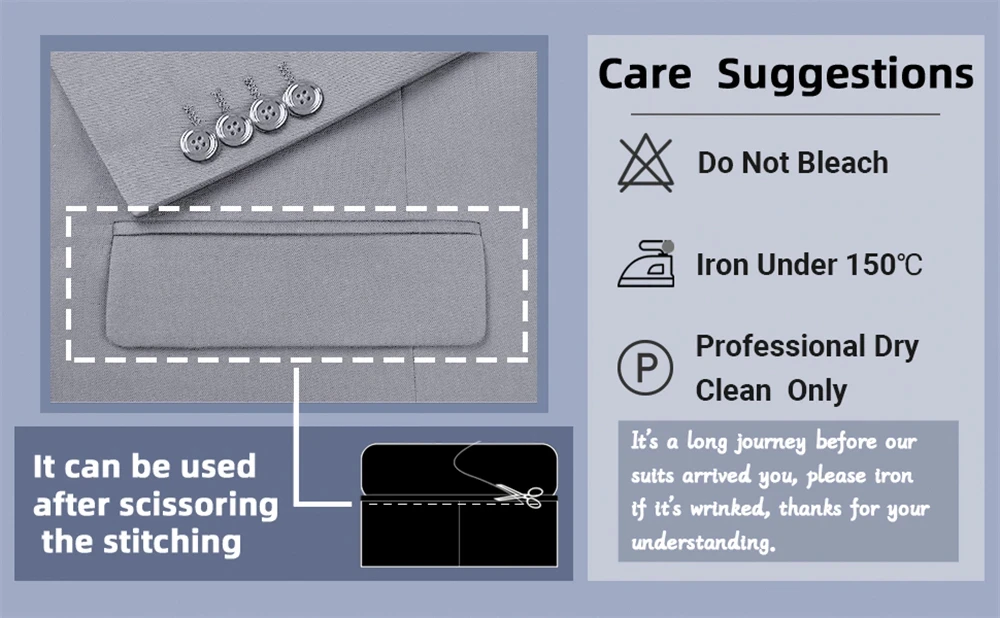 Made from high-quality materials and expertly tailored, this suit set features a single-breasted jacket with a notch lapel, a fully lined vest, and a pair of matching pants. The jacket is highlighted by two buttons and has a chest pocket suitable for a handkerchief, while the vest features four buttons and a comfortable fit. Both the jacket and vest are fully lined for a polished look.