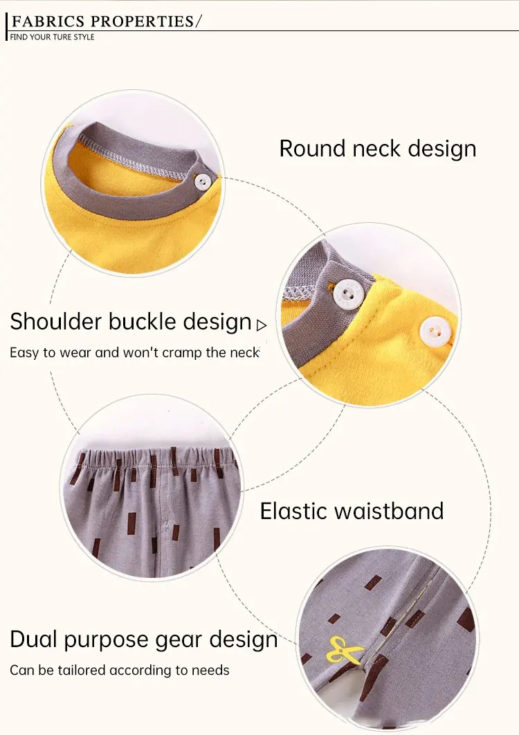Item Name:Children Sets 100% Cotton Kids Pajamas Boys Girls Shirt Suit