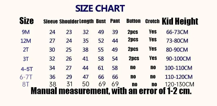9m ,12m ,2T ,4-5T ,3T ,6-7T ,8T |