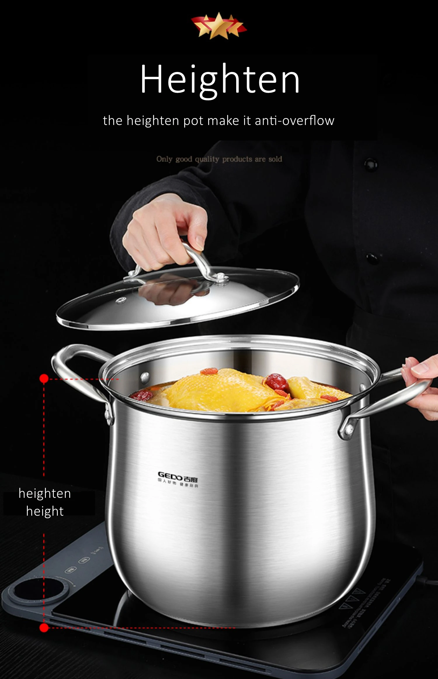 GEDO LFGB 304 Stainless Steel Stewing Pot