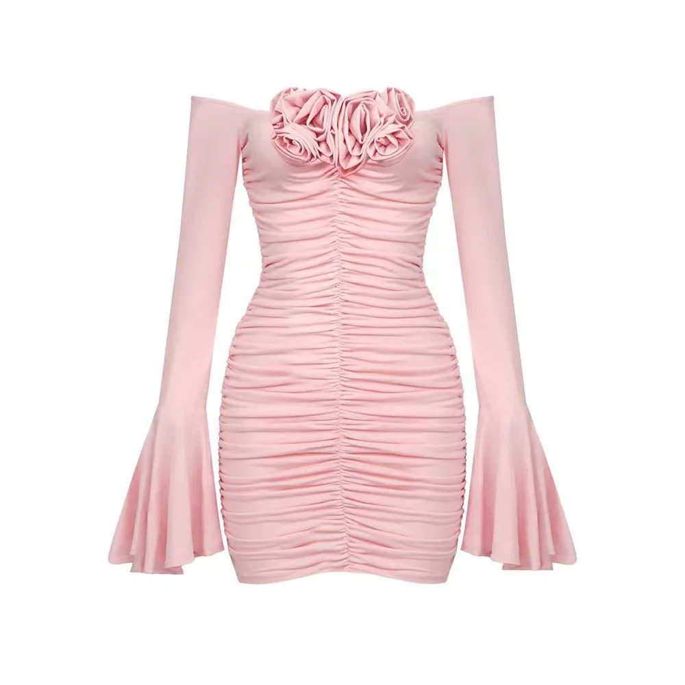 LS2386 Kimshein Fashion Womens Fashion Streetwear Dress Long Sleeve Flower Dress Sexy Women Dresses Clothing