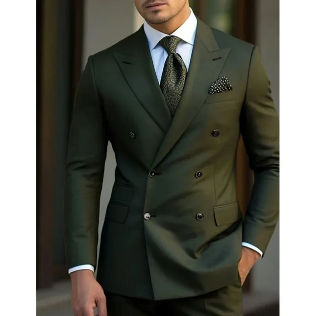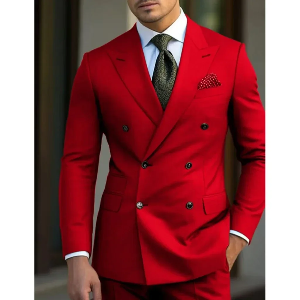 man 2 piece outfit set Pointed collar high-quality slim jackets men’s suit with peak lapel for wedding Summer beach