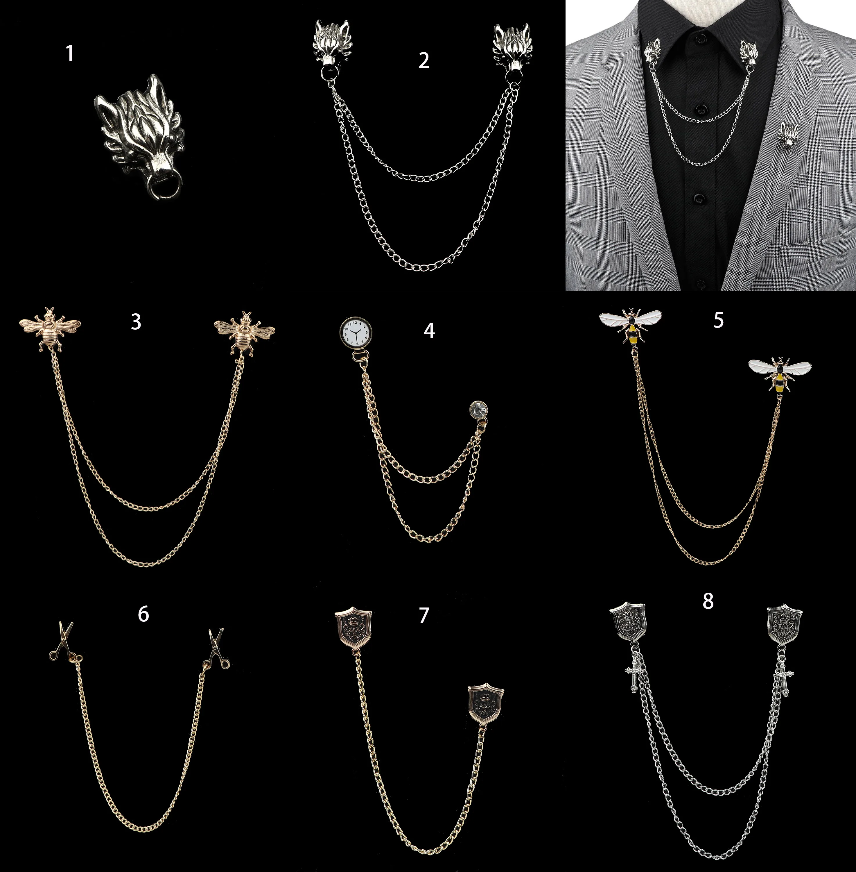 Man Suit Shirt Collar Lapel Pin Brooch Dragon Badge Retro Pins Wedding Dress Party