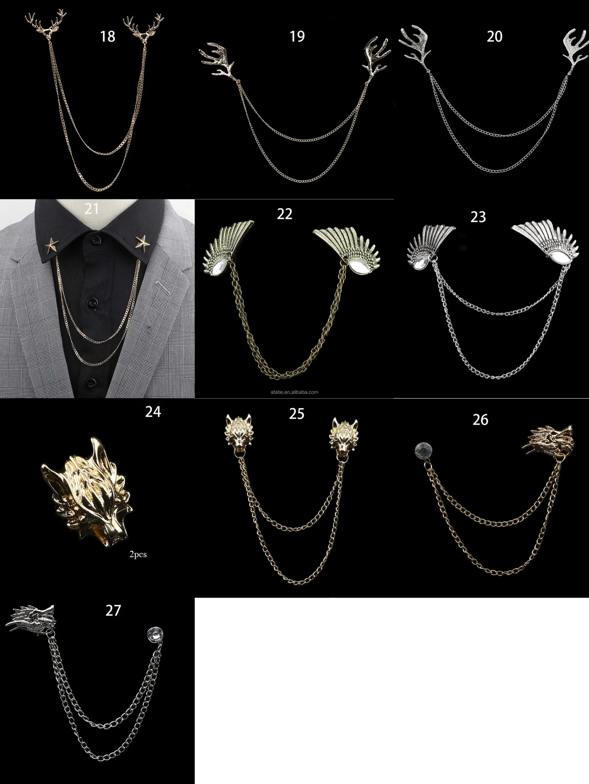 Man Suit Shirt Collar Lapel Pin Brooch Dragon Badge Retro Pins Wedding Dress Party