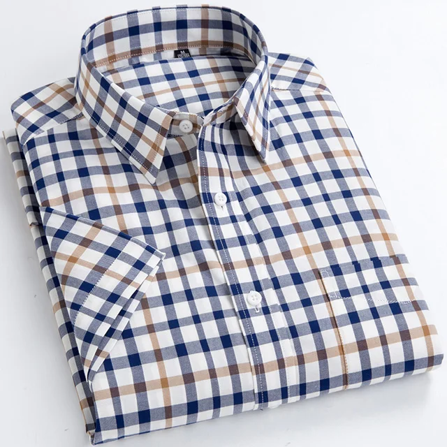 Plaid Checkered Short Sleeve 100% Cotton Shirt Button