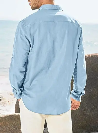 Name: Men's Shirt Double Pocket Cotton Linen Long Sleeve Shirt Casual Holiday Shirt Simple Lapel Solid Cargo Shirts Tops Blouses