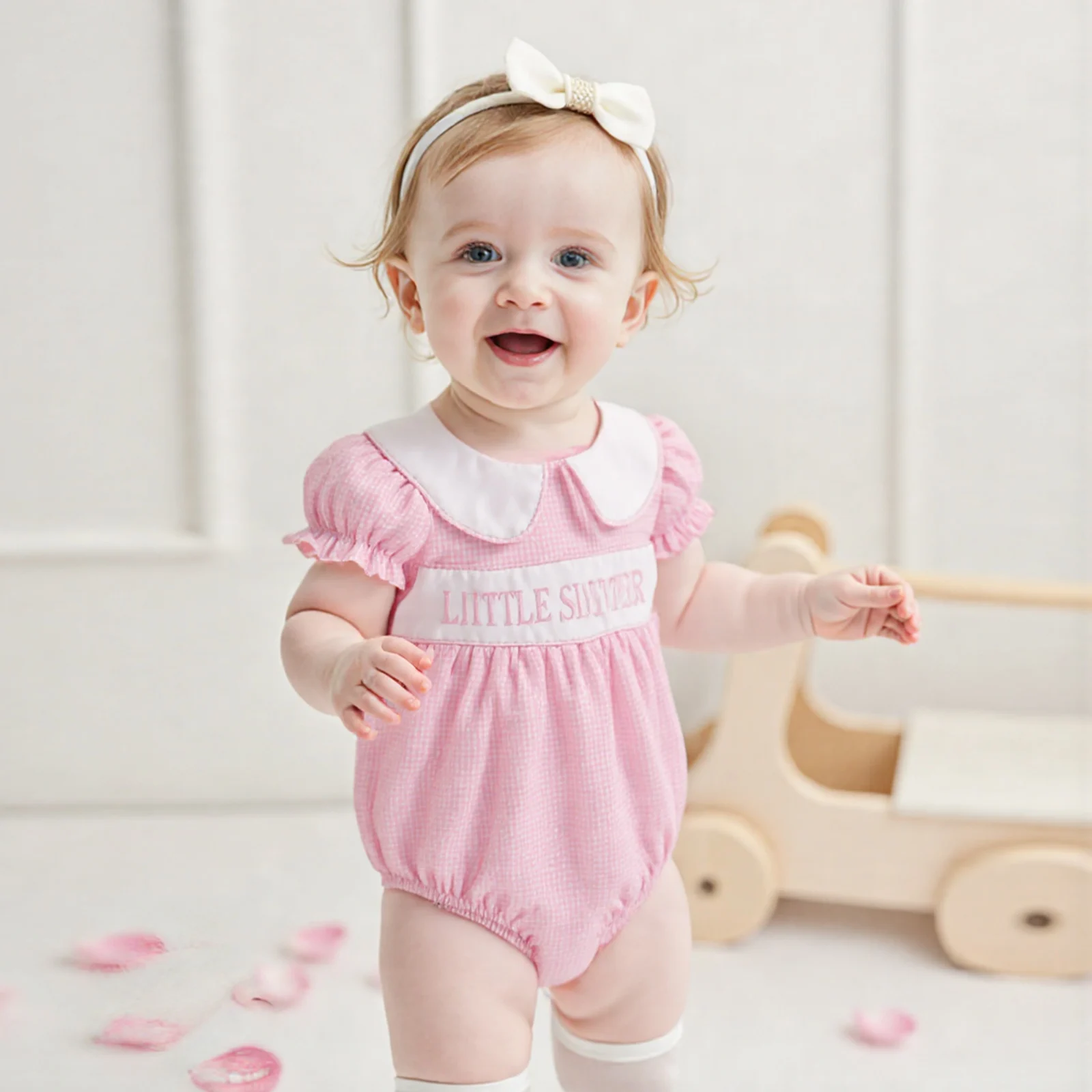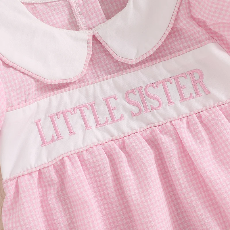 Sister Matching Outfits Toddler Girls Dress Baby Romper Letter Embroidery Doll Collar Short Sleeve Romper/Dress