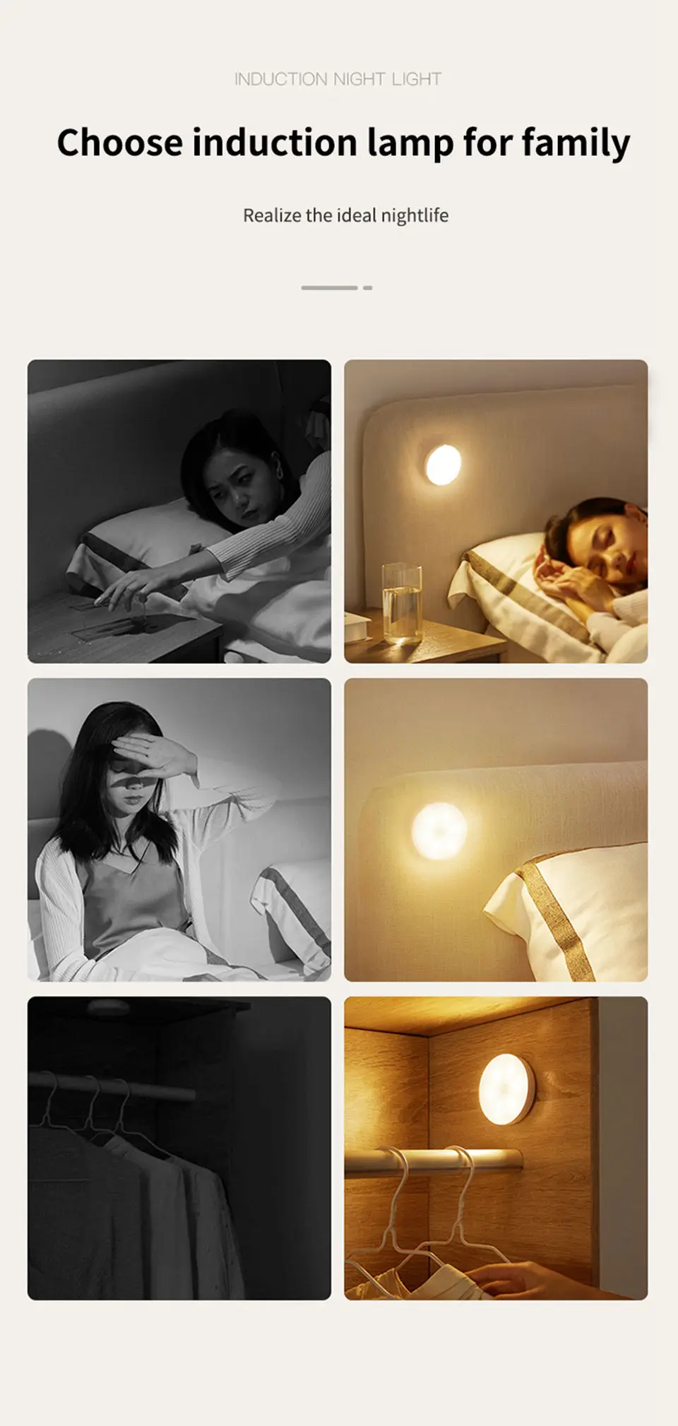 3. Under Counter Lights for Kitchen is a friendly nighttime assistant, which is perfect for young children and many people who are afraid of the dark. The motion closet lights are widely used for bedrooms, baby rooms, under the counter fixture, counter, kitchen, shoe cabinet, bookshelf, garage, basement, closet, stairs, hallway, cupboard, stairway, drawer etc.