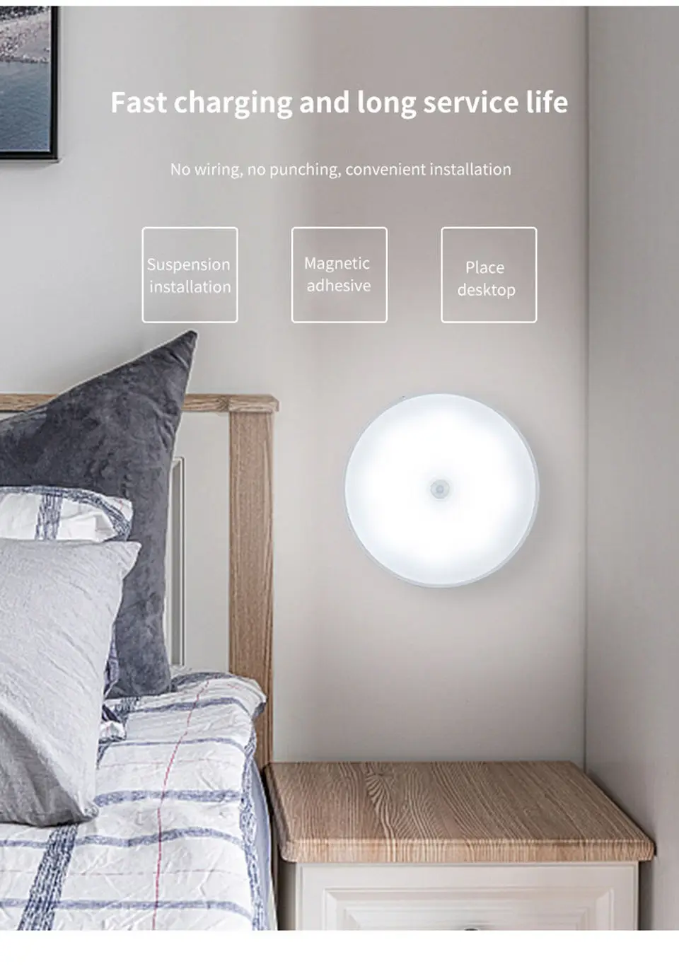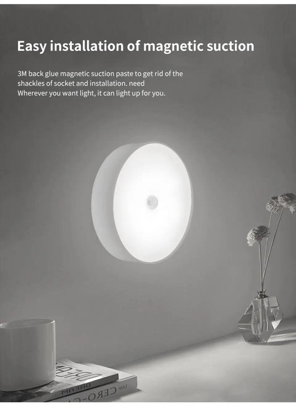 1. Motion sensor light Indoor Rechargeable will turn on automatically when you come close within 3-5M and automatically turns off 20 seconds after motion stops. Ideal for hallways, Closet Rooms, stairways, basements and many more commercial or residential applications. Get your life more convenient!