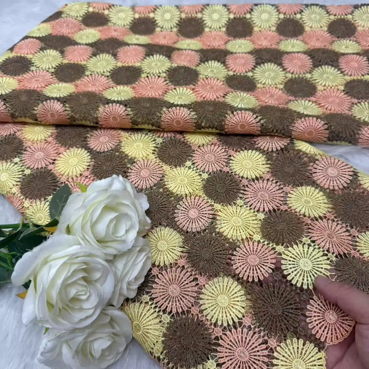 African Guipure cord lace fabric