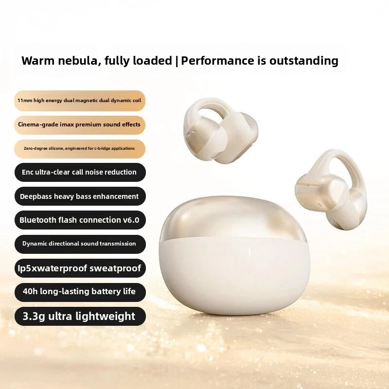 Open-Ear Headphones, Clip-On Earbuds-Wireless Bluetooth Earbuds with Microphone EarHook Sports HiFi Sound Headset