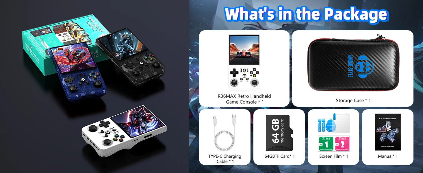 1) Games Storage: 64G 128G built-in, plus TF card option, offers a 18000+ game library.