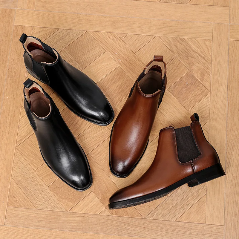 Chaussures 2026 New Season Chelsea British Retro Handmade Shoes for Gentlemen Men’s Boots Chaussures Pour Hommes