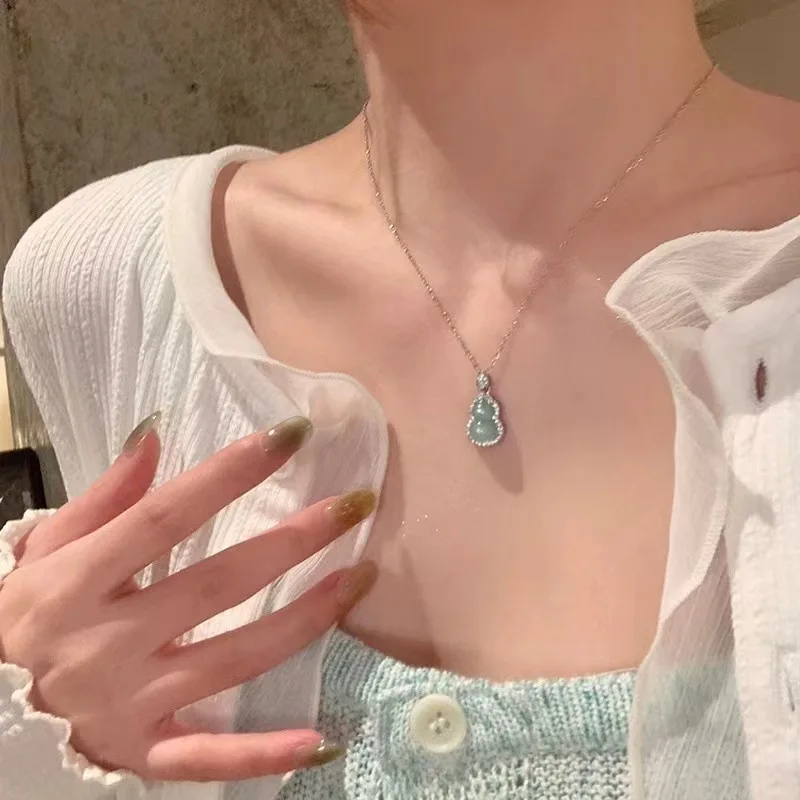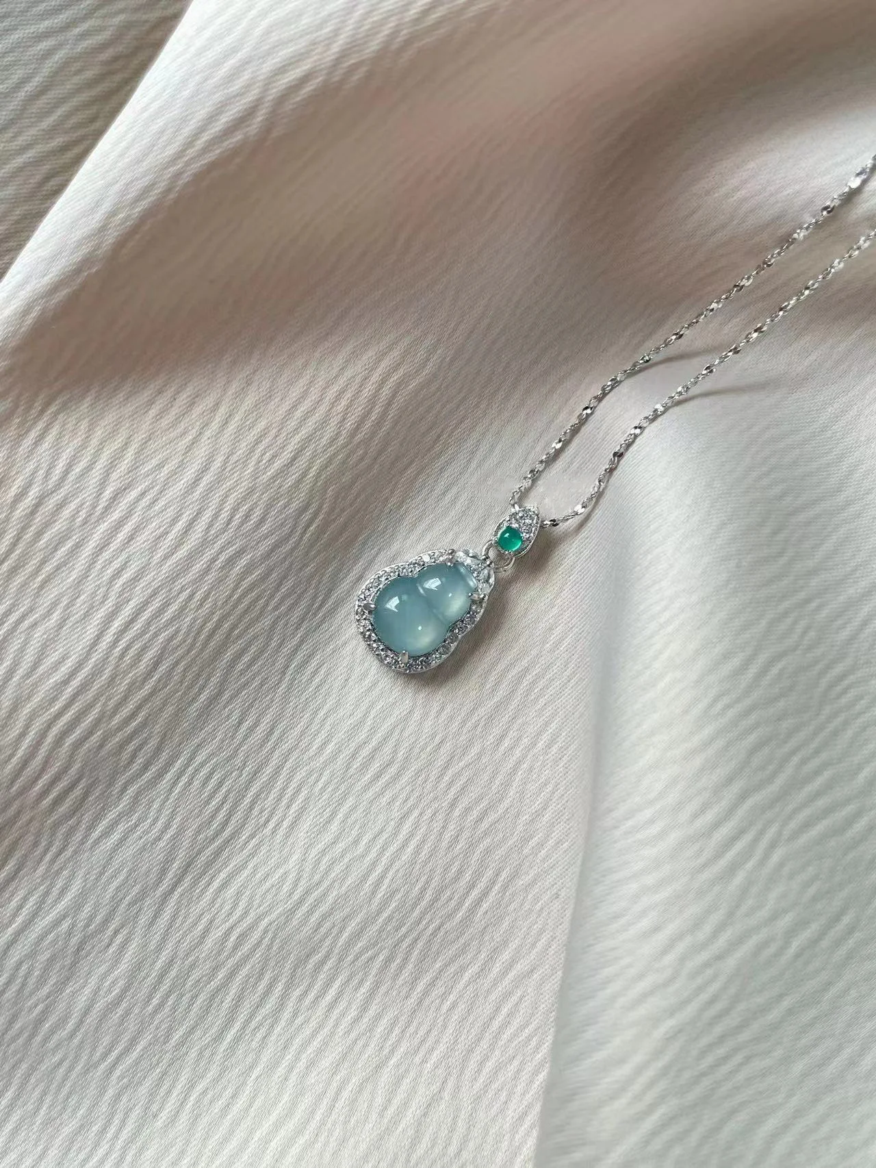 Natural Green Chalcedony “Gourd” Pendant Necklace
