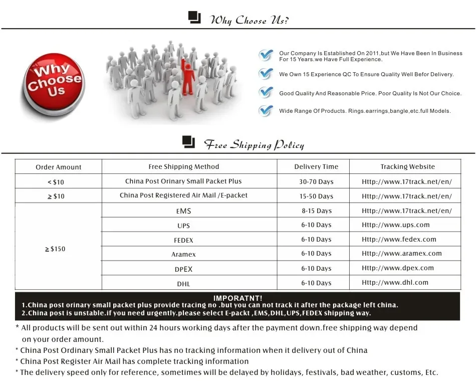 2)China Post Air Mail :As usually .ship to Asia,West Euro, North America around 15-35 working days, ship to South America,Mid-East,East Euro,Africa around 30-60 working days.