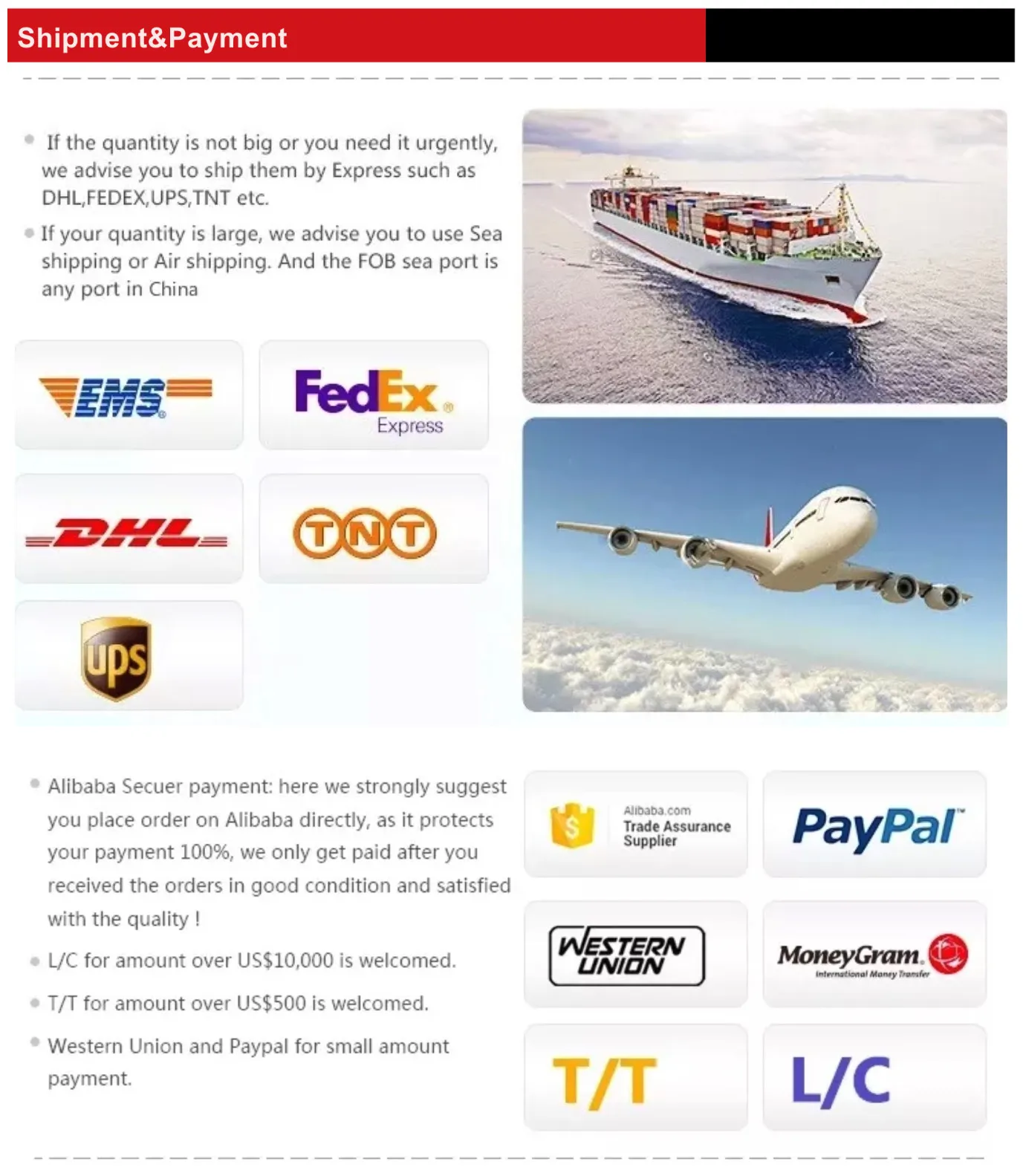 Online Trade Assurance and Secure Payment are welcome. We also accept L/C,T/T,Western Union, Paypal etc.
