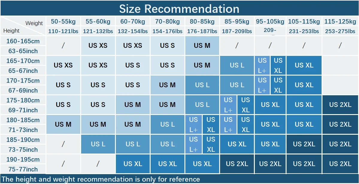 CN 2XL (US L Plus) ,CN XL (US L) ,CN L (US M) ,CN M (US S) ,CN 4XL (US 2XL) ,CN 3XL (US XL) |