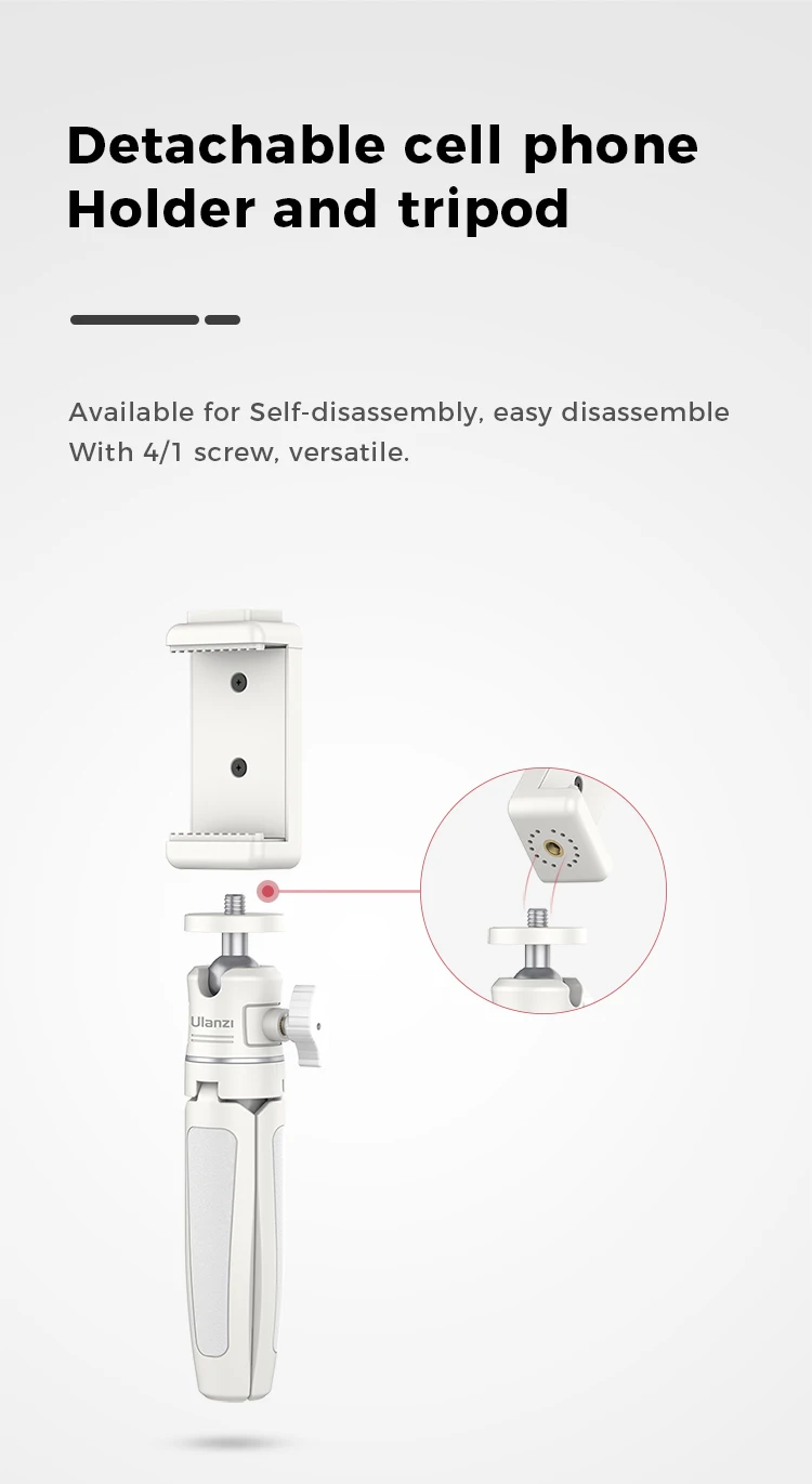 Ulanzi MT-08 Mini Tripod White Color Foldable Tripod Monopod Mount 1/4” Tripod Universal for DSLR Android iPhone Smartphone