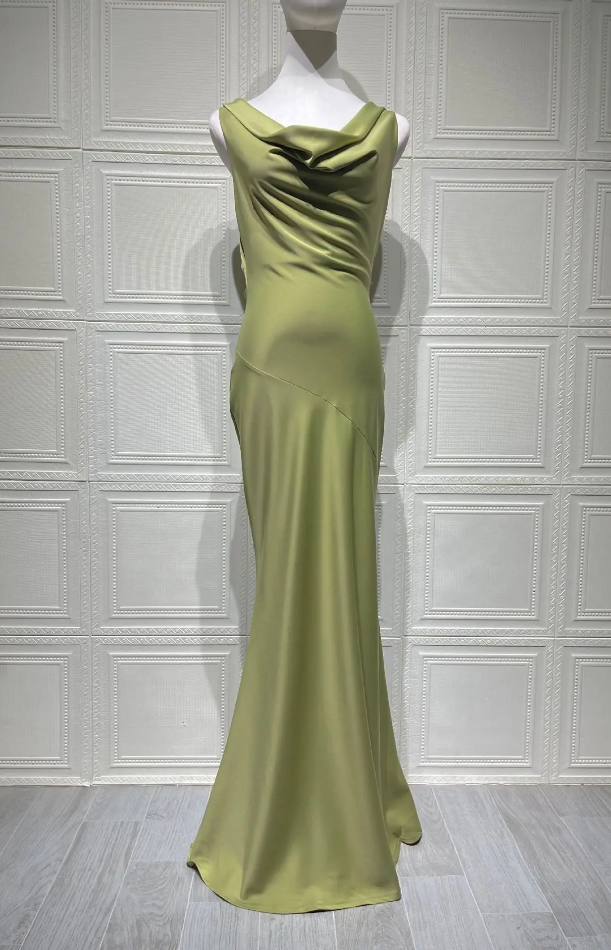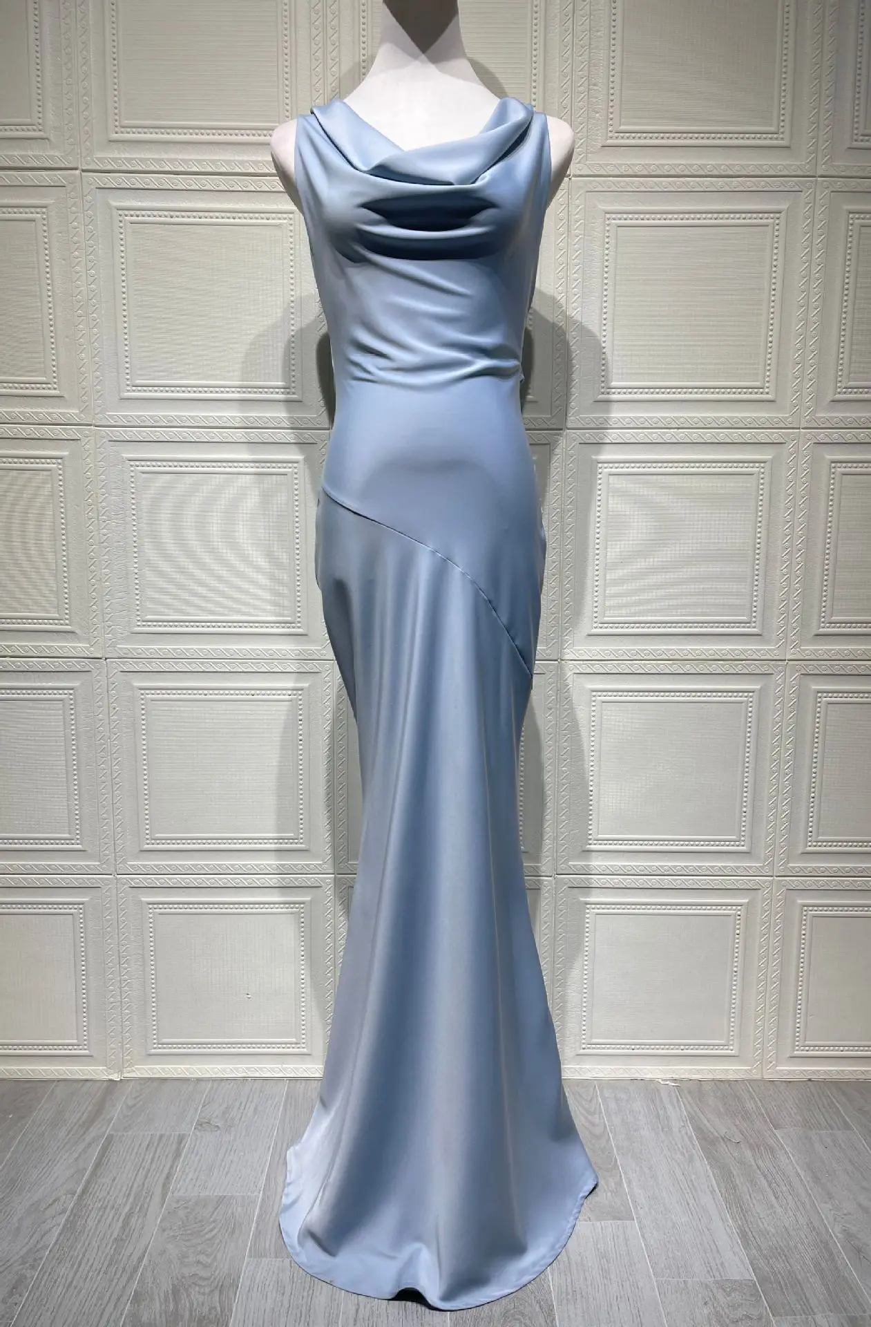 XIAOTANG Satin Cowl Neck Maxi Dress