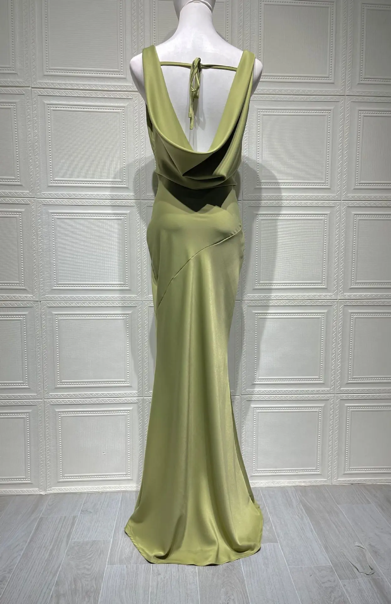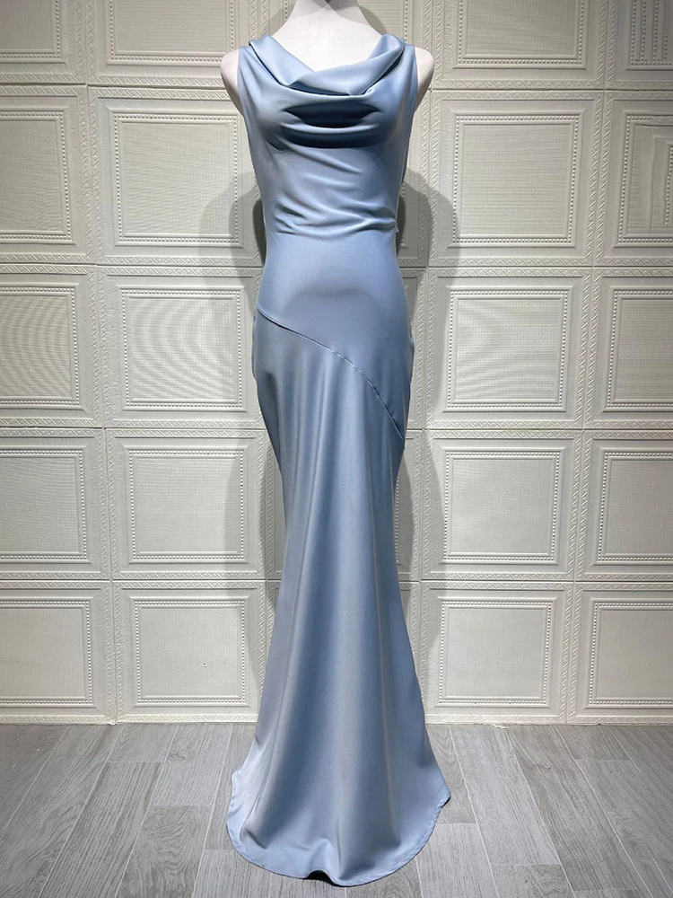 XIAOTANG Satin Cowl Neck Maxi Dress